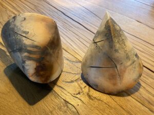 Een oloïde en een sphericon zijn geometrische vormen, die tot stand komen d.m.v. handvormen.